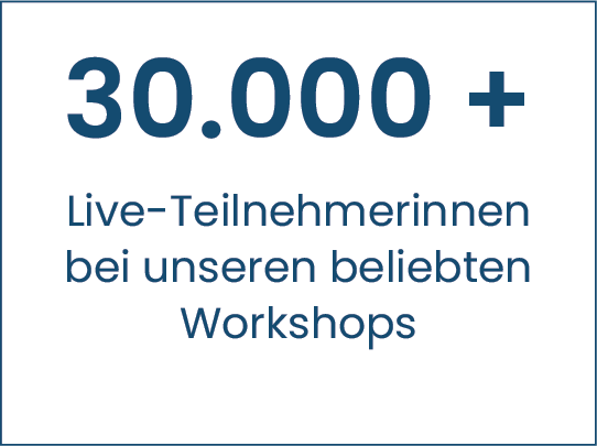 Die Live-Trainings finden in unserem Trainingsraum (z. B. via ZOOM oder Live-Stream) statt. Nach Deiner Anmeldung erhältst Du alle Informationen und das Workbook per E-Mail. Zum weiteren Austausch laden wir Dich in unsere geschlossene Online-Community ein. Alle Inhalte erhältst Du zusätzlich als Aufzeichnung, sodass Du garantiert nichts verpasst.